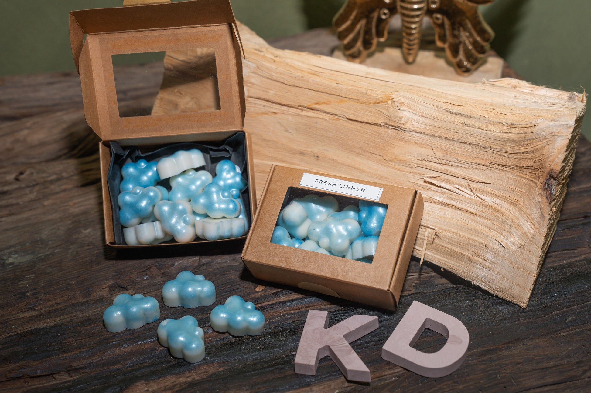 Om te beginnen, zet je jouw waxbrander op een brandvaste ondergrond. leg 3 a 4 waxmeltjes op de waxbrander.